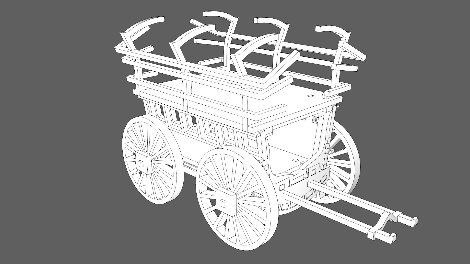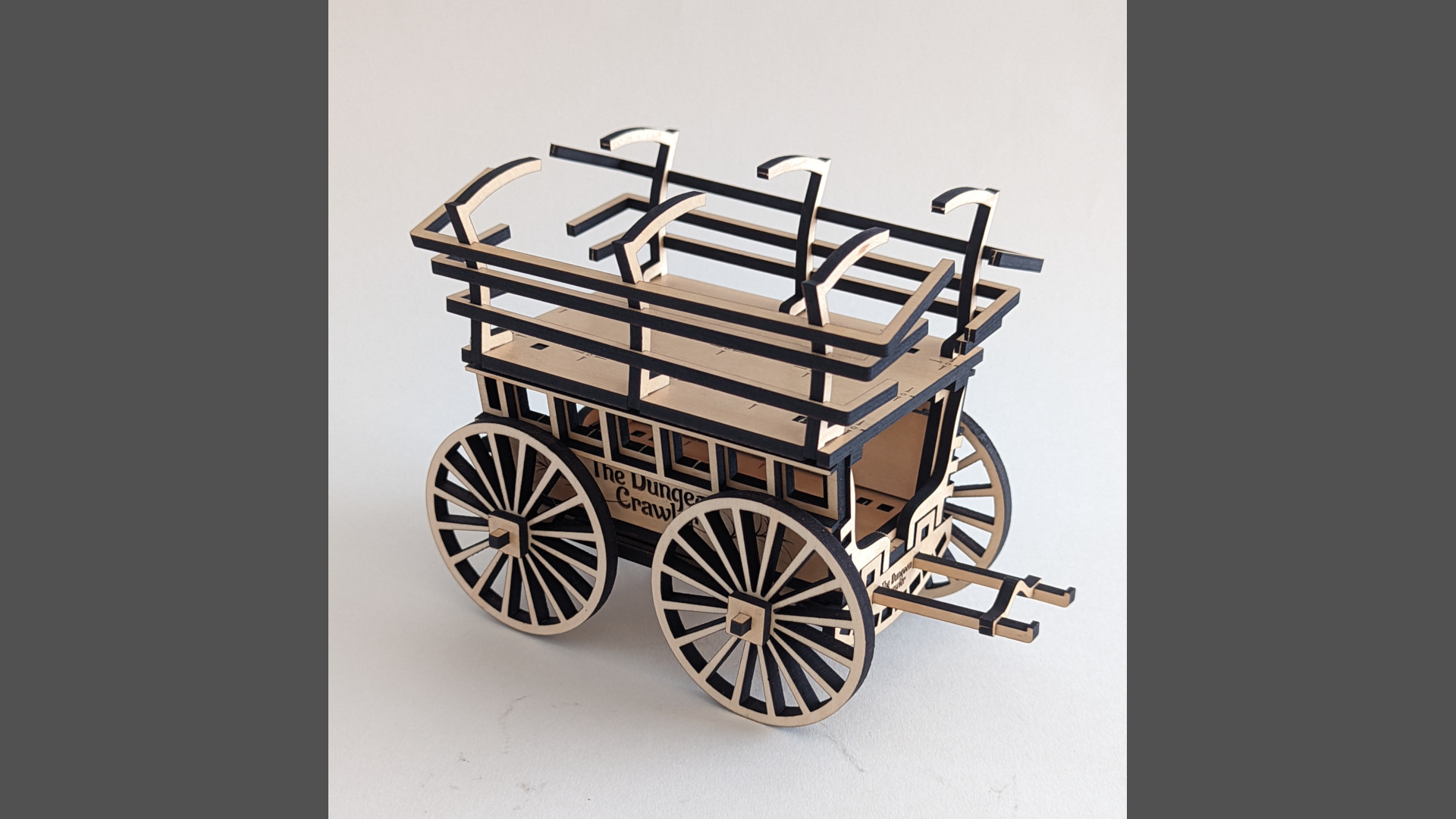 My friends and I have been playing Dungeons and Dragons for a few years now, and the group decided they wanted to have an adventure where their characters have a covered wagon to use as a mobile base. I thought it was a great idea, so I designed and built a model kit for us to use in our game with our other tabletop miniatures. It turned out so well that I produced a run of flat-pack model kits and wrote an entire supplement for use in TTRPGs.